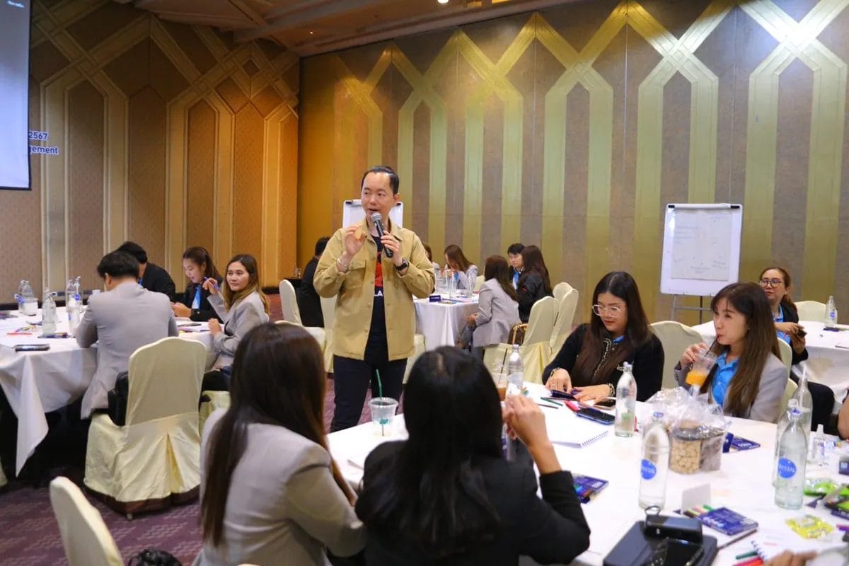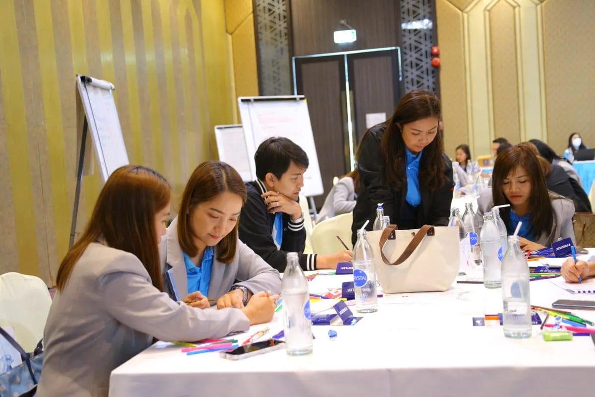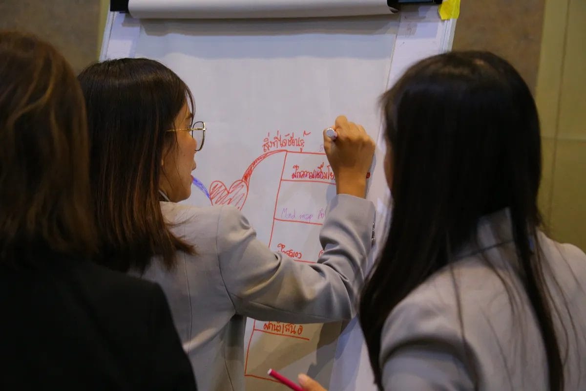 บรรยากาศการเรียนรู้ Mind Map ของผู้เข้าอบรมจากธนาคารกรุงไทย เต็มไปด้วยบรรยากาศสนุกสนาน ผู้เรียนได้ร่วมคิด ร่วมคุย ร่วมสร้างสรรค์ ผ่านกิจกรรมต่างๆ เช่น